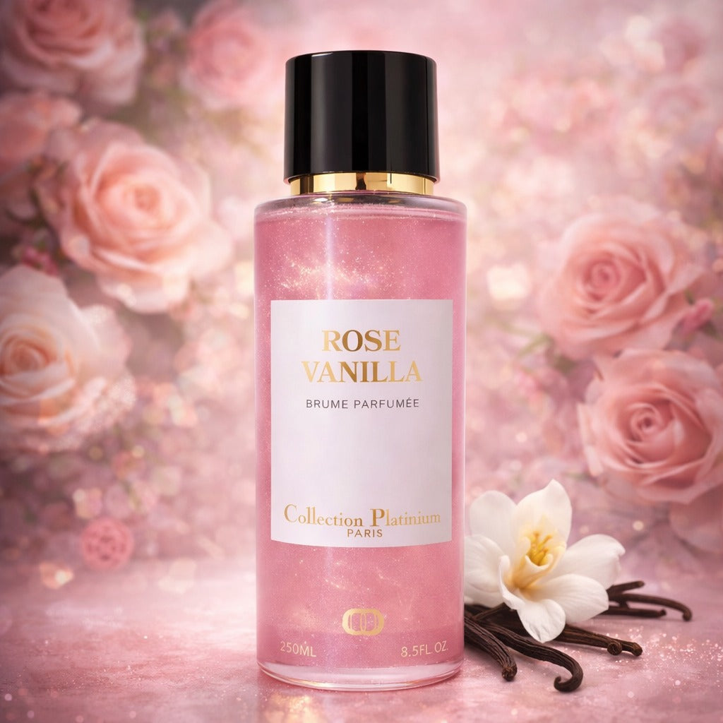 Rose Vanilla de la Collection Platinium est une brume parfumée conçue pour une utilisation sur le corps et les cheveux. Sa fragrance associe la douceur florale de la rose à la chaleur enveloppante de la vanille, créant un parfum délicat, harmonieux et facile à porter au quotidien.
